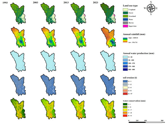 However, human activities, particularly urbanization and agricultural development, have a significant impact on land use changes. During urbanization, large areas of original forests and grasslands are converted into impervious urban surfaces, substantially reducing the region’s water conservation capacity. Agricultural development can lead to overuse of land and destruction of soil structure, further impacting water conservation functions.
