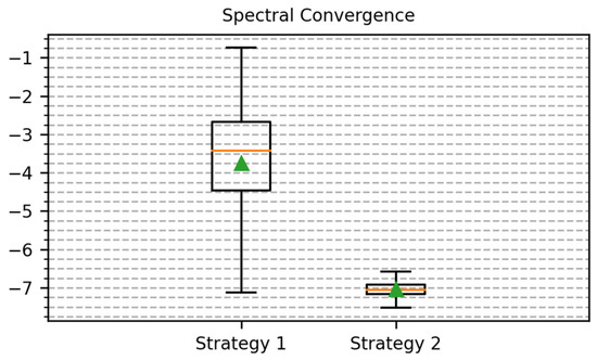 Log-Spectral Convergence comparison of Augmentation Strategy 1 and Augmentation Strategy 2.