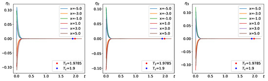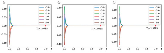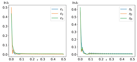 As observed in Figure 7, the convergence of and is more rapid for smaller values. Nonetheless, when , there is oscillation around , indicating a transient instability.