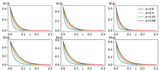 Finally, we examine the impact of the fractional-order parameter on synchronization by analyzing the outcomes for various values of , such as .