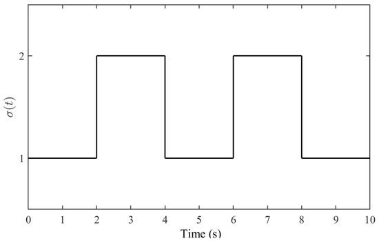 Then, based on condition 3 in Theorem 3, the average dwell time can be given as . The following Figure 2 shows the switching signal in the numerical simulation.