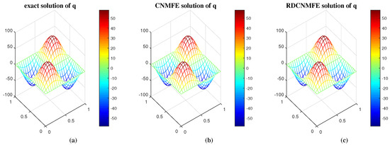 errors and convergence orders between the genuine, CNMFE, and RDCNMFE solutions of q.