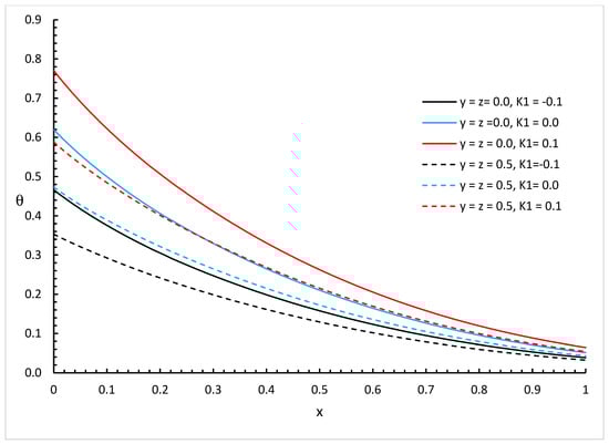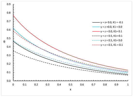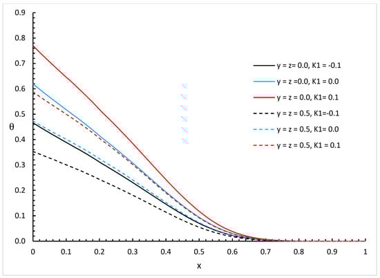 - The results of this work agree with other works when the value of the fractional order parameter is equal to one and the thermal conductivity is constant, such as in references [,,,].