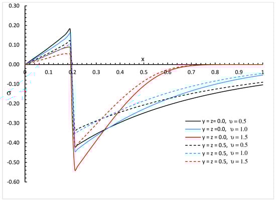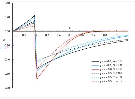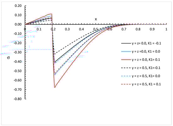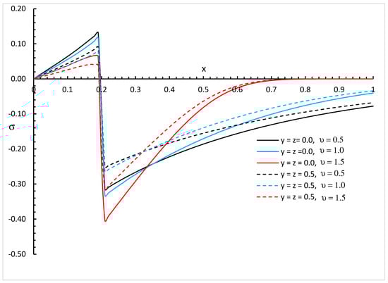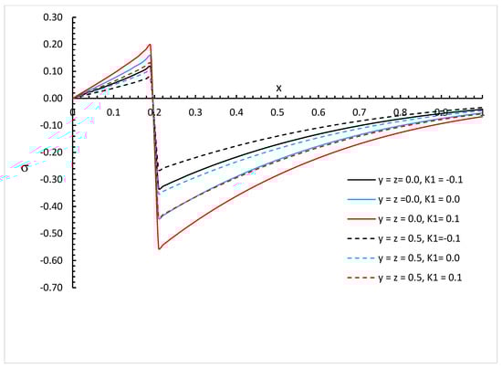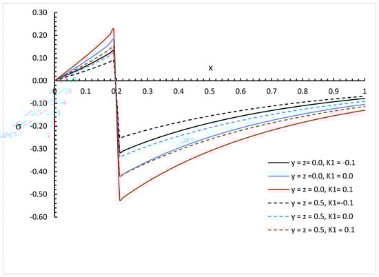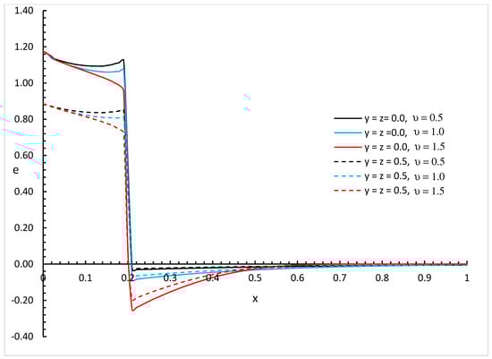 We can see that the variability of thermal conductivity has a significant effect on the invariant strain distribution where an increase in the absolute value of the parameter results in an increase in the invariant strain for the different positions of and different values of the fractional order parameter. Moreover, the fractional order parameter has a significant effect on the invariant strain distribution where an increase in its values results in a decrease in the absolute value of the invariant strain and makes the mechanical wave fall to zero faster. In addition, the positions have significant effects on the invariant strain where an increase in its values results in a decrease in the absolute values of the invariant strain.