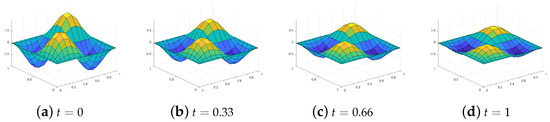 (Chebyshev nodes). Consistent with the above two numerical examples, the proposed method is capable of attaining temporal second-order convergence for problems with unknown solutions, while the proposed compared method achieves first-order convergence. It can be seen from Table 9. Finally, we present the evolution of the reference exact solution in Figure 7, Figure 8 and Figure 9.