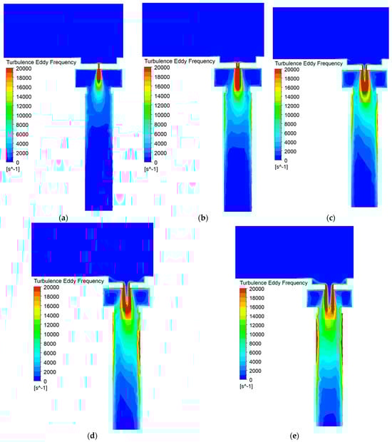 Turbulence eddy frequency at different defect diameters: (a) 1 mm; (b) 2 m; (c) 3 mm; (d) 4 mm; (e) 5 mm.