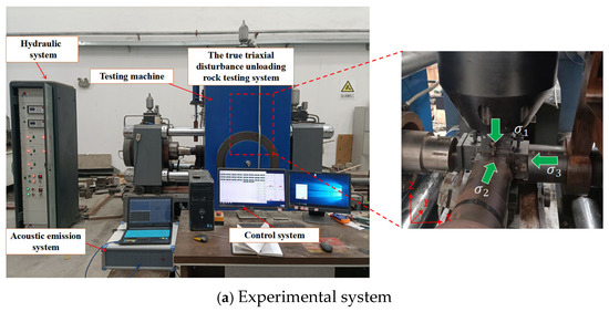 Unloading is a common phenomenon during the construction of tunnels, side slopes, energy storage facilities, and other civil engineering projects. Cai et al. [1] reported that unloading is the internal driving force behind rock failure. Stress concentration will likely happen after unloading, resulting in rock bursts, rock spalling, and serious deformation. These accidents may cause casualties and economic losses. Understanding the failure mechanism of rocks under true triaxial unloading offers high scientific value from the theoretical, experimental, and engineering perspectives.