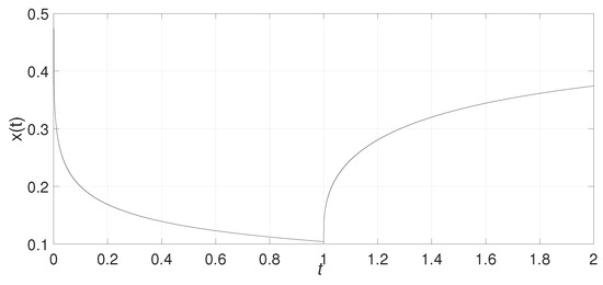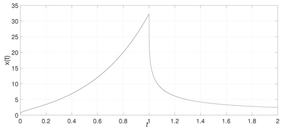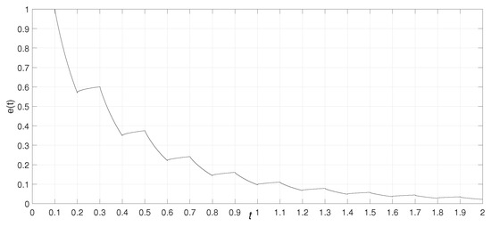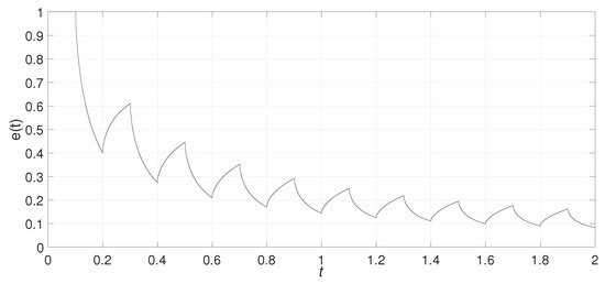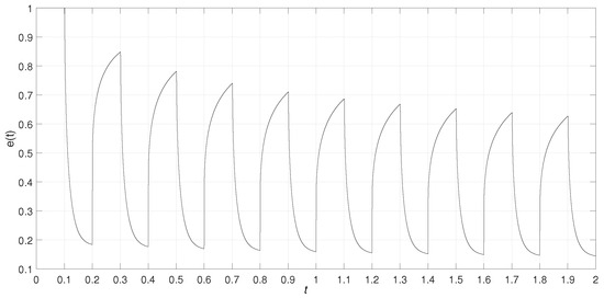 Note 2. There exists a transient process for a fractional system under intermittent control. The transient item is limited and its limit is presented as Equation (21).