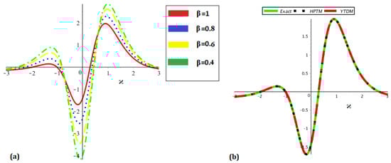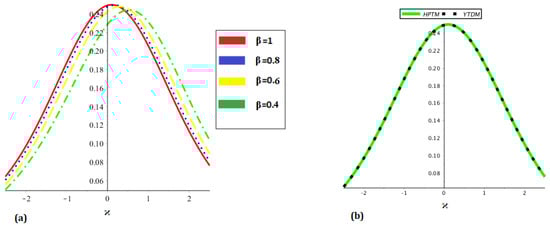 Unfortunately, due to the laborious work involved, some of these analytical solutions are difficult to use. It can be difficult and important to understand how nonlinear partial differential equations behave in the physical sciences. Despite this, fractional calculus is crucial for the understanding of nonlinear problems. Accurate solutions to FPDEs are crucial in many scientific fields, including applied mathematics. The majority of FPDE issues typically lack closed-form precise solutions, and finding exact solutions is exceedingly challenging. As a result, numerous numerical techniques have been created to solve both linear and nonlinear FPDEs. For example, Oqielat et al. [] proposed the Laplace residual power series method to solve the general fractional modified KdV system. Yadav and Singh [] familiarized themselves with the new alternative variational iteration Elzaki transform method time-fractional generalized Burgers–Fisher equation. Aboodh [] announced the homotopy perturbation transform method for addressing the porous medium equation. Gao et al. [] presents a semi-analytical solution to the time-fractional Black Scholes equation (TFBSE) using the homotopy analysis fractional Sumudu transform method. Wang et al. [] presents the q-homotopy analysis transform method for solving (2+1)-dimensional coupled fractional nonlinear Schrödinger equations. Other applications are listed in the literature [,,,]. As a result, we are inspired by this scenario to investigate the behavior and approximate solution of the Korteweg-de Vries (KdV) equation in a specific situation [].