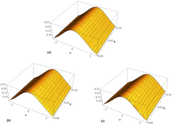 The equation is represented by Equation (2). Due to the fact that the fractional Caputo derivative [] describes the memory of the system at earlier historical phases, this derivative of arbitrary order is useful for illustrating innovative real-world phenomena like atmospheric physics, earthquakes, ocean climate, vibration, dynamical systems, and polymers. Thus, the Caputo type of the equation can be represented as