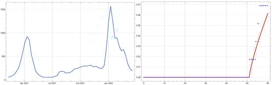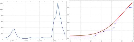 In Figure 3, the time series of COVID-19 cases in Izmir and fitted CDF function are depicted.