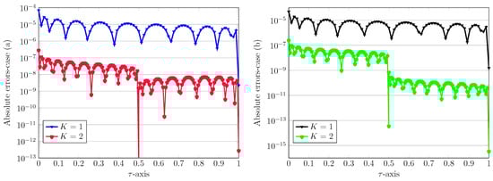 34]) against Cases (a) and (b), by evaluating their associated absolute errors. For clarity,