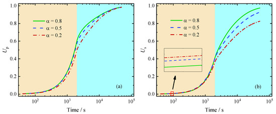 Influence of fractional order on average degree of consolidation: (a) Up (b) Us.