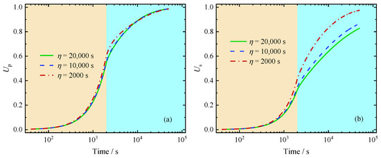 Influence of viscosity time on average degree of consolidation: (a) Up (b) Us.