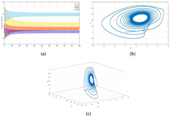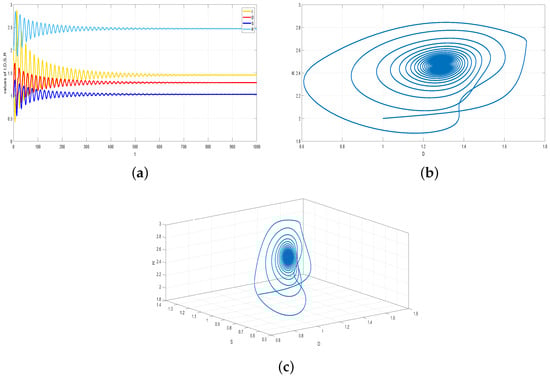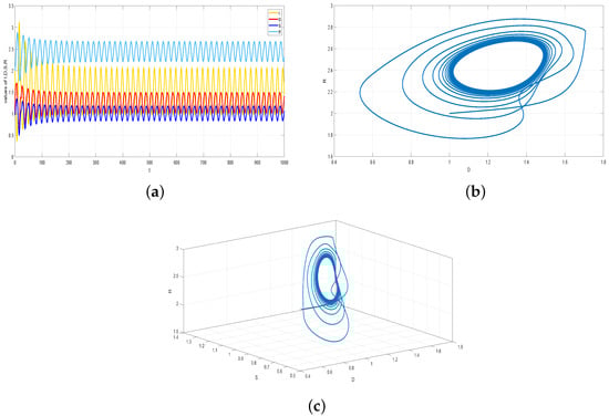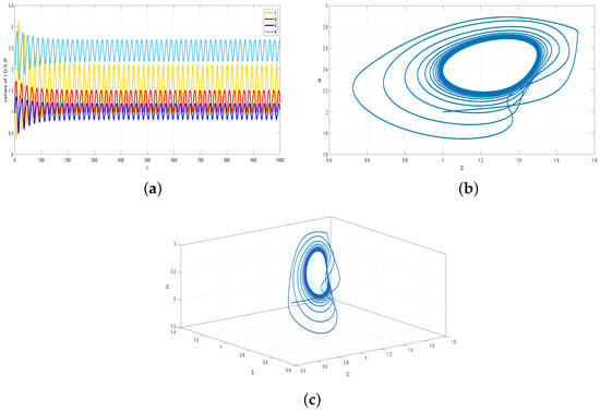 Figure 4b,c display the formation of a distinct limit cycle. Furthermore, when