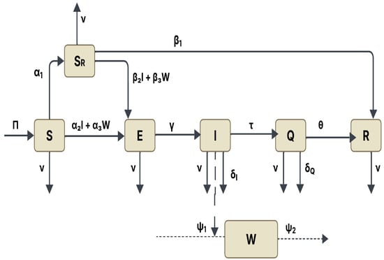 For further analysis, we put the proposed model (Equations (4)–(11)) into the following compact form.