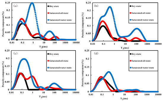 where Fs is the pore geometry factor. For spherical pores, Fs = 3, and r is the pore radius (nm). Based on this formula, it can be inferred that there is a linear relationship between T2 the spectrum and pore size. Consequently, the Formula (5) can be further simplified as