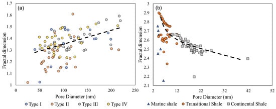 - Yang, R.; He, S.; Yi, J.; Hu, Q. Nano-scale pore structure and fractal dimension of organic-rich Wufeng-Longmaxi shale from Jiaoshiba area, Sichuan Basin: Investigations using FE-SEM, gas adsorption and helium pycnometry. Mar. Pet. Geol. 2016, 70, 27–45. [Google Scholar] [CrossRef]