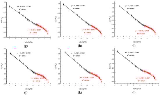 Fractal dimension of coal samples treated with different acid solutions. (a) YM; (b) SM; (c) 3%HA; (d) 5%HA; (e) 3%AA; (f) 5%AA; (g) 3%GA; (h) 5%GA; (i) 3%OA; (j) 5%OA; (k) 3%CA; (l) 5%CA.