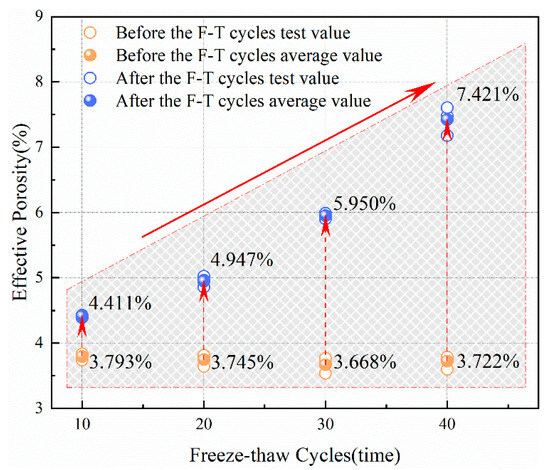 Effective porosity of sandstone before and after freeze–thaw cycles.