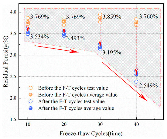 Residual porosity of sandstone before and after freeze–thaw cycles.