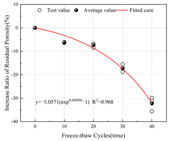 Relationship between the growth rate of residual porosity and the number of freeze–thaw cycles.