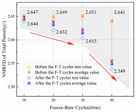 Relationship between NMR fractal dimension of total porosity and number of freeze–thaw cycles.