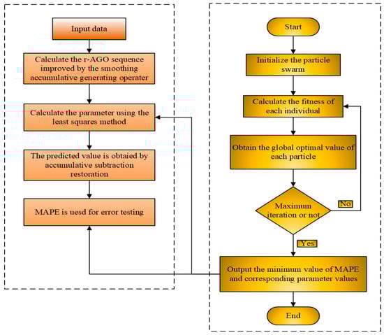 In gray system theory, the smoothed-accumulation-generated algorithm is usually employed. The reason why we use this method is that it has the characteristics of new information priority to some extent and improves the accuracy of model prediction. The SGMC(1,N) model applies weighted smoothing to historical data, effectively reducing volatility in time series. Concurrently, it captures potential persistent trends in the datasets. The specific flowchart of the SGMC(1,N) is presented in Figure 4.