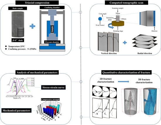 12] also used fractal theory and three-dimensional reconstruction technology to characterize the fracture development of shale under hydraulic fracturing. The findings demonstrated that increasing confining pressure prevented shale fractures from extending and prevented their volume transformation. Yang et al. [