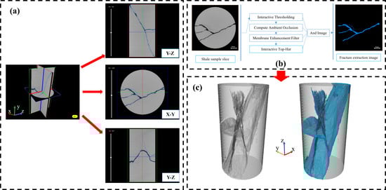 Figure 12), using Avizo’s “Extract subvolume” module. The rupture angle of each main crack is calculated, and then the weighted rupture angle of each crack is obtained according to the percentage of its crack volume to the total crack volume. The sum of the weight angles of ownership obtained for each sample is the new rupture angle [
