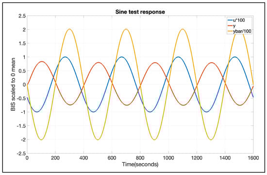 As stated in the introduction, once the BIS signal has reached steady state, a sine test is performed based on the approach in []. A sinusoidal input signal of small amplitude and frequency equal to ωgc, denoted u(t), is applied as the Propofol drug rate. The term ‘small’ refers to an amplitude which is significantly smaller than the dosage used for the maintenance phase. The exact quantities will be provided in the following subchapter.