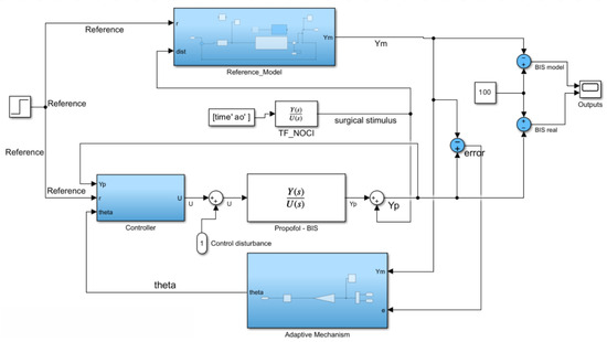 - Uncertain plant: adaptive control addresses uncertainty in both linear and nonlinear plants, which can manifest as either structured uncertainty (parametric uncertainty) or unstructured uncertainty (where neither parameters nor functional characteristics are known). In this paper’s case, the plant process is the depth of anaesthesia induced through anaesthetic drugs and measured through the BIS signal. Patient variability and unexpected behaviour generate the uncertain aspects of the process, which the MRAC system must compensate for.