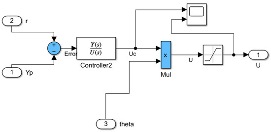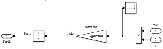 The reference model functions on an unaltered control signal, uninfluenced by the adaptive mechanism. The primary control signal u is designed in accordance with the reference model. The actual control signal is then obtained by multiplying this control signal u with the adaptive parameter [39,43]: