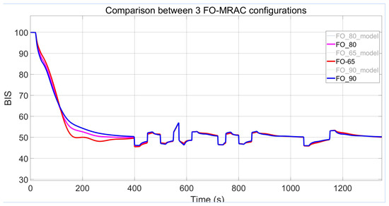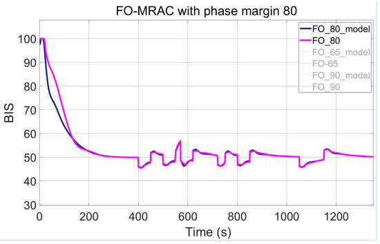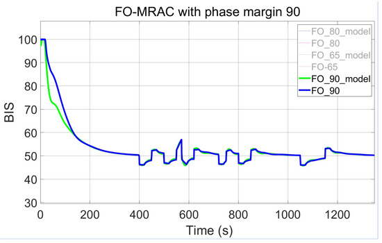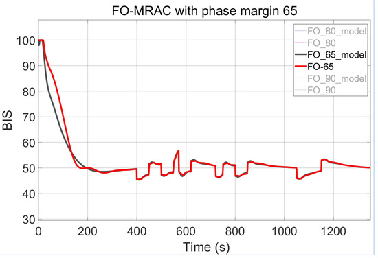 Configurations and parameters for adaptive systems governing propofol-to-BIS process approximations have been meticulously tailored to meet rigorous operational criteria and uphold safety standards in anaesthesia management. The evaluated adaptive control schemes demonstrate potential in managing surgical stimuli during the maintenance phase, albeit with a slower rise time compared to the ideal model reference. Nevertheless, the system effectively maintains the BIS signal within safety parameters and displays smooth operation, indicating a less aggressive control approach. The FO-MRAC method demonstrates notable reference model tracking and ensures smooth, stable performance, especially with a phase margin of .