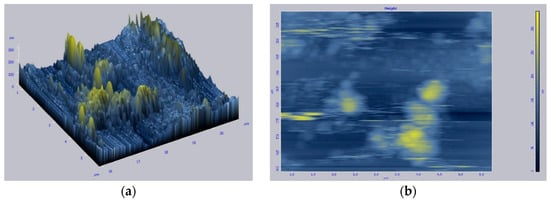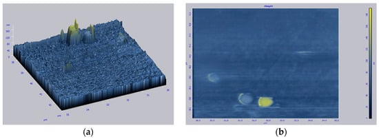 Taking samples on an AFM showed the following results (Figure 6). Figure 6a,b show AFM images of tin dioxide film without the addition of ammonium hydroxide.