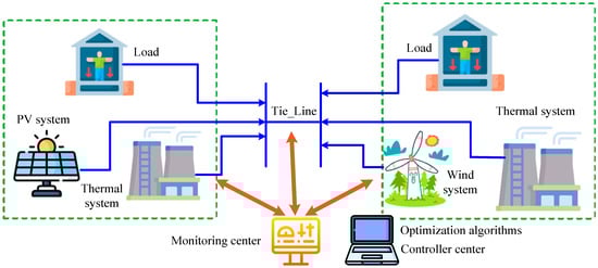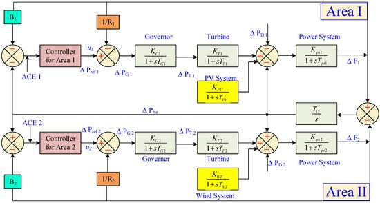 The framework diagram of two-area renewable and thermal-integrated power system.