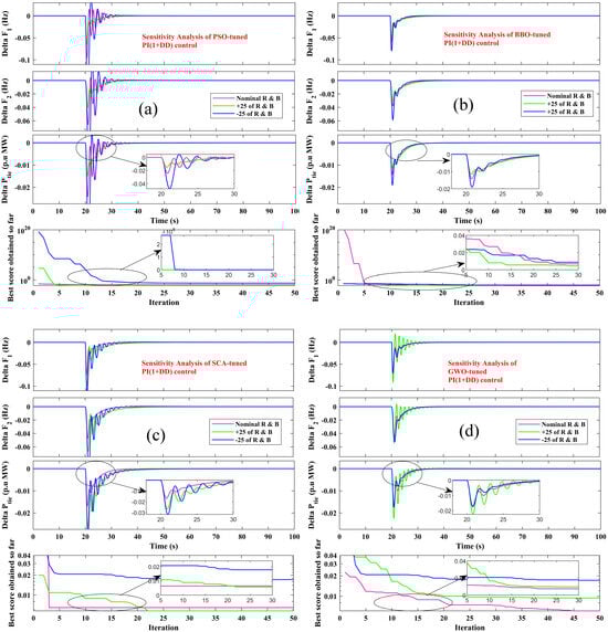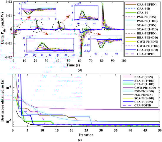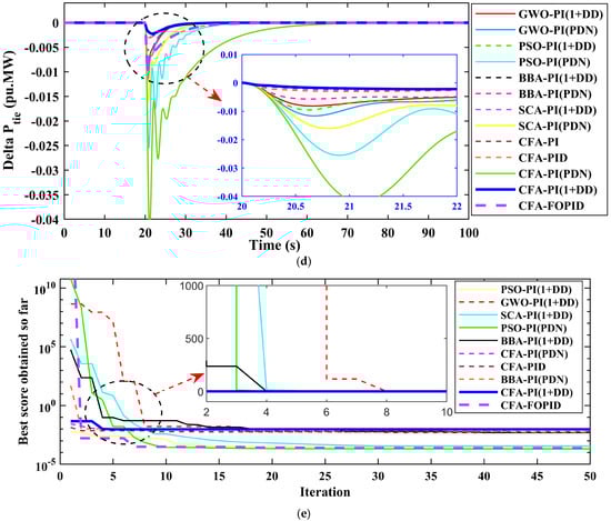 There are limits on the gains of both PID and PI (PDN) controllers. Utilizing the following optimization problem, where i is the area number (i = 1, 2), the gains for PID and PI(PDN) controllers are determined. Reduce the objective function to a minimum = J being exposed in Equation (17):