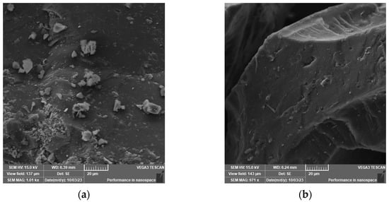 Surface scanning electron microscopy of different coal samples. (a) S0 and (b) S4.