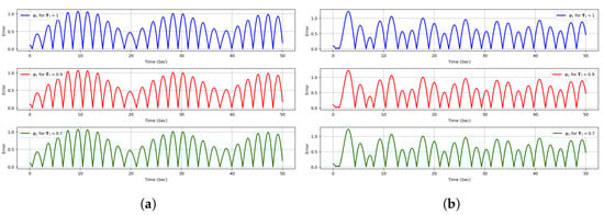 Thus, Definition 5 makes clear that the Nussbaum function provides an unlimited transforming frequency and intensity. The most frequently encountered Nussbaum functions for controlling include , and . This study uses for establishing a control system.