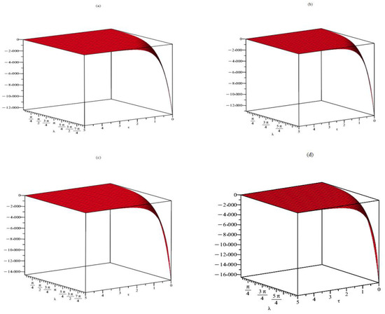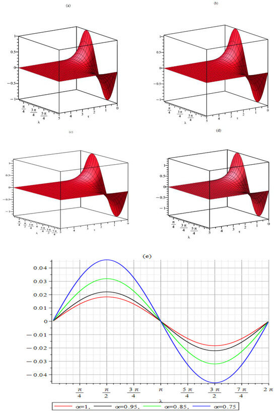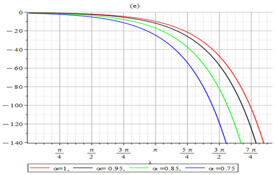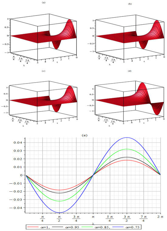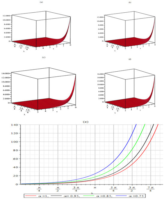 For , (a–d) with and 3D graphs (a) (b) (c) (d) and (e) denote the 2D plot with .