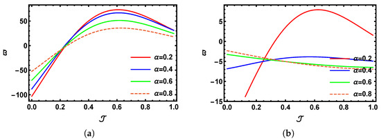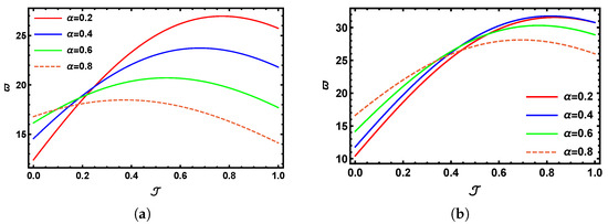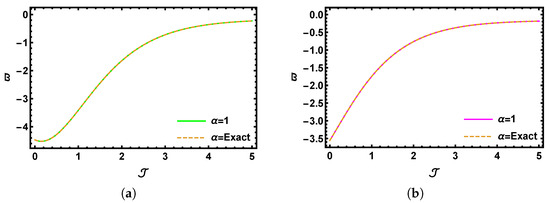 A 2D visual comparison between SHTM results and the precise outcomes for with multiple fractional values of when with (a) and (b) .
