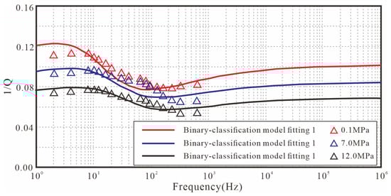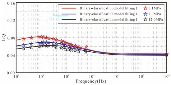 To verify that the two-classification fractal model can characterize the attenuation characteristics of the measured coal samples, MATLAB (2019a) was used to fit the laboratory measured data and the model. The relaxation time was calculated by the formula given by Batzle []: