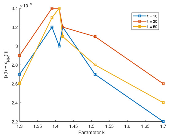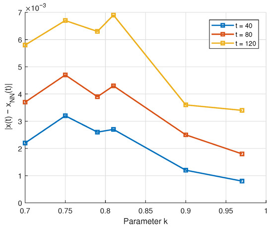 | k | t | Present Work | NN Approx. | Absolute Error |