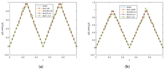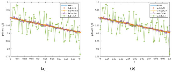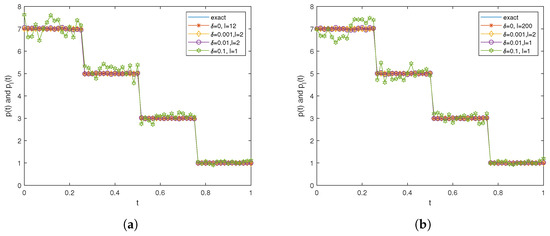 Results of Example 4 corresponding to different noise levels: (a) , (b) ,