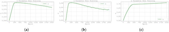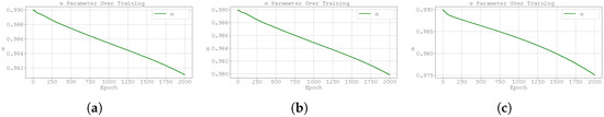 Another source of instability in the Neural FDE training process is the update of the at the same frequency of since, as stated in Section 1, the optimal parameter set for one fractional order may be remarkably distinct for another. Thus, even small changes in can require substantial re-learning of .