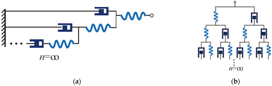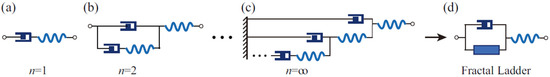 For clarity, we focus on fractal ladders to revisit key concepts in physical fractal spaces. A fractal ladder is a symmetry-broken variant of a fractal tree. As illustrated in Figure 2a, compared with the perfectly symmetric fractal tree in Figure 2b, the fractal ladder exhibits broken symmetry due to its dashpot component being directly connected to the base node.