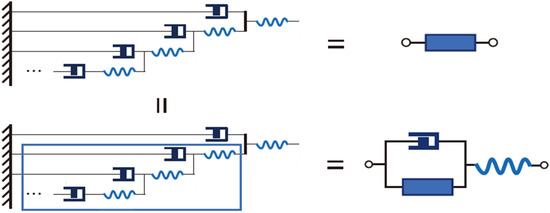 The derivation of Figure 6 stems from the transitivity of equivalence relations; since both the fractal unit cell and the holistic fractal element are individually equivalent to the fractal diagram, it follows that the unit cell must equal the holistic element. By evaluating the two circuit diagrams and leveraging the undetermined nature of the holistic fractal element, we obtain Equation (18) governing the fractal operator. This equation is typically quadratic, and its solution (a square root expression) yields the operator’s value when the positive root is selected.