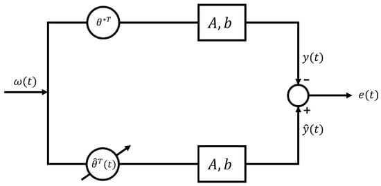 where is the ideal parameter assumed to be unknown, is the adjustable parameter that estimates , and is the parametric error. is the state error, is the input signal, also known as the information signal, and is the output error, which is assumed to be accessible.
