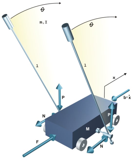 The inverted pendulum-cart system remains a paradigmatic benchmark in nonlinear control theory due to its underactuated nature, structural instability, and rich dynamic behavior. This system serves as a standard platform for evaluating advanced control strategies and finds practical applications in robotics (e.g., bipedal locomotion), aerospace (e.g., satellite orientation), and civil engineering (e.g., structural vibration mitigation) [,,].