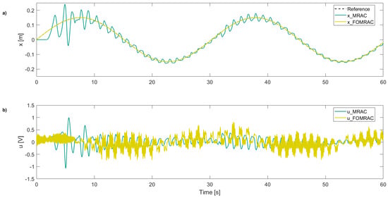 where the gain K is equal to . The numerical values for the MRAC and FOMRAC controllers are defined in Table 2.